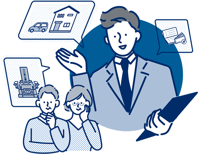 名義変更や金融機関手続きなど、煩雑で時間がかかる手続きをすべてお任せいただけます。ご家族に代わって専門家が責任を持って対応し、負担を最小限に抑えます。
